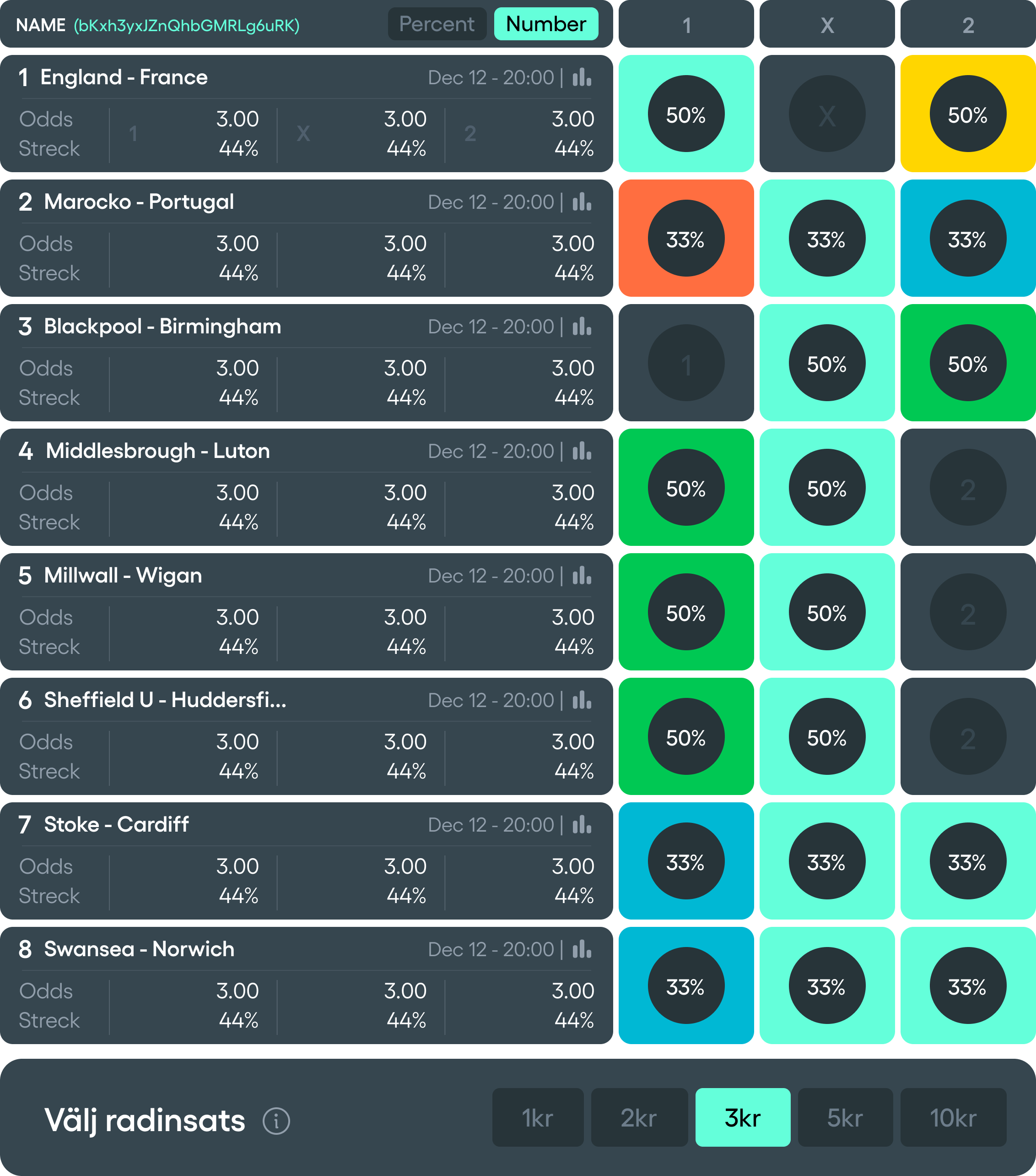 Kanske vill man bara betala för rader med x antal skrällar eller spela med en större grundram än normalt - då är vårt reduceringsverktyg det perfekta hjälpmedlet. Reducera bort oönskade utfall och håll samtidigt koll på teckenfördelning och svårighetsgrad via graferna. Reducering är det moderna och smarta sättet när du spelar Powerplay för att öka vinstchanserna.